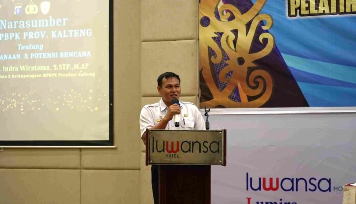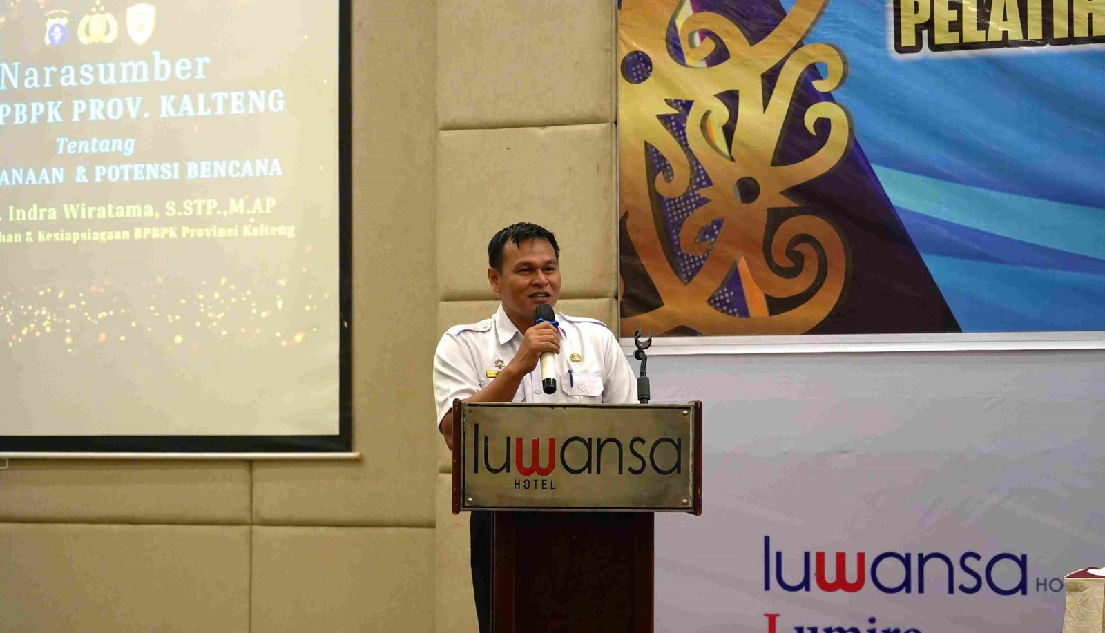 Kepala Bidang Pencegahan dan Kesiapsiagaan BPBD Kalteng, Indra Wiratama, hadir mewakili Kepala Pelaksana BPBD Kalteng. Dalam pelatihan tersebut, Indra menyampaikan materi mengenai kebencanaan, penanganan darurat, serta pentingnya sinergi lintas sektor dalam penanggulangan bencana di Kalimantan Tengah.