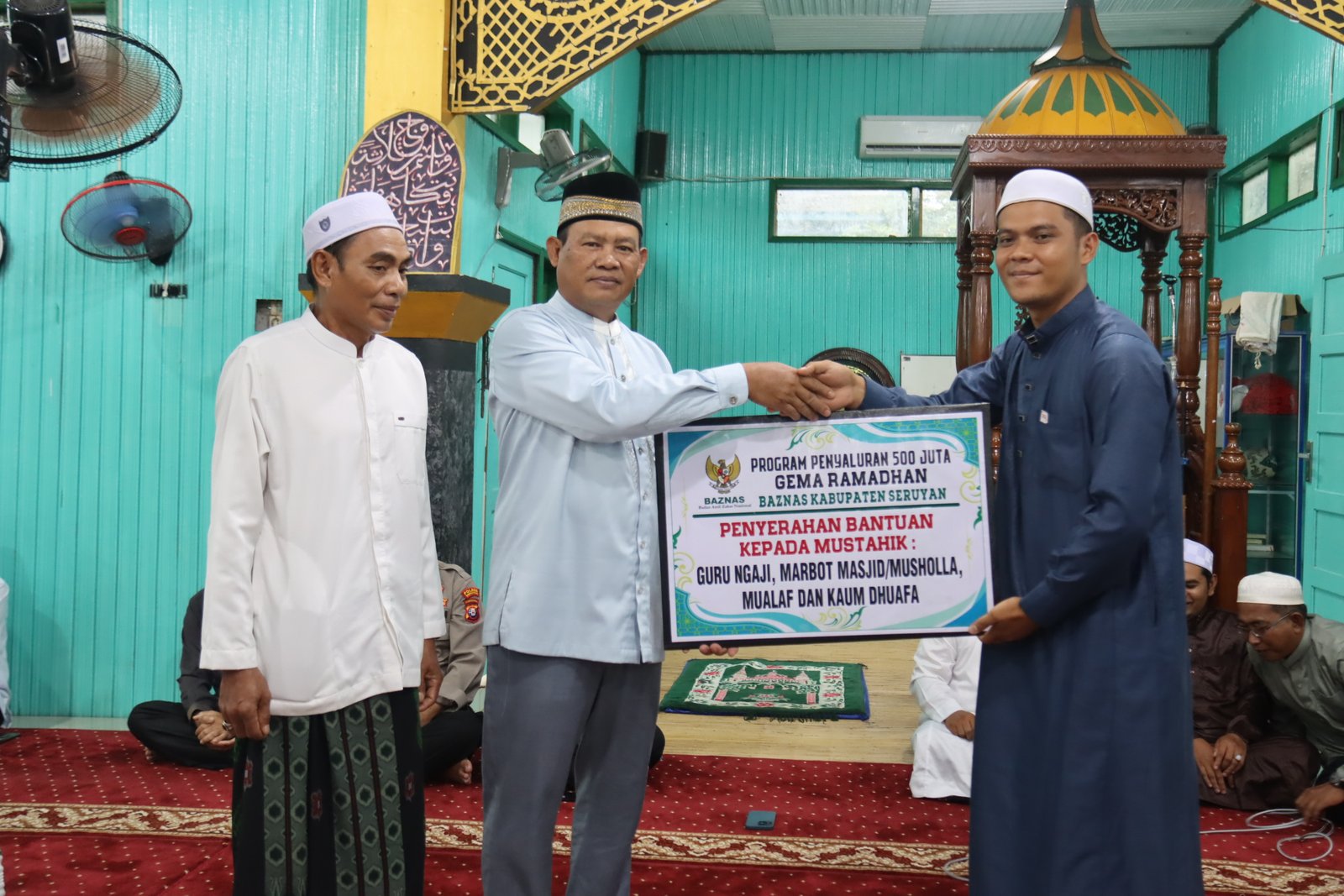 Dalam kesempatan itu, Pemerintah Kabupaten Seruyan melalui Badan Amil Zakat Nasional (Baznas) Kabupaten Seruyan turut menyalurkan bantuan sosial kepada guru mengaji, pengurus masjid, para mualaf, serta kaum dhuafa. Bantuan tersebut diharapkan dapat meringankan beban masyarakat sekaligus menjadi penyemangat dalam menjalani ibadah di bulan suci Ramadan.