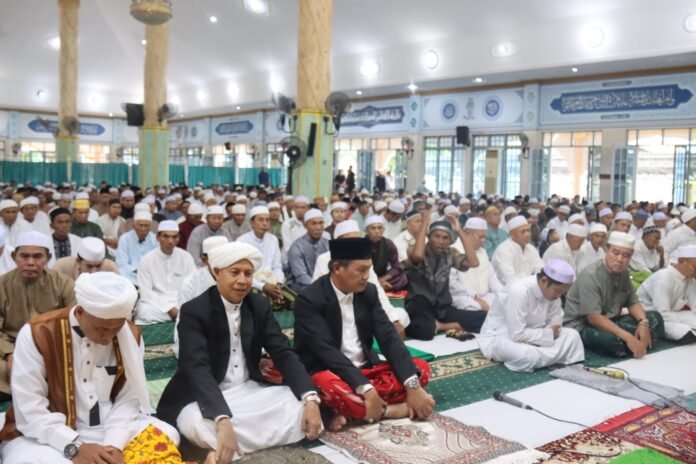 Kuala Pembuang – Bupati dan Wakil Bupati Seruyan melaksanakan Sholat Idulfitri 1447 H/2026 M di Masjid Agung Nurul Yaqin, Sabtu (21/3/2026).Pelaksanaan Sholat Ied berlangsung khidmat dan diikuti oleh ratusan masyarakat yang memadati masjid sejak pagi hari.