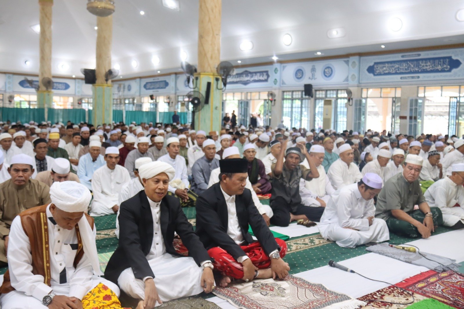 “Patut kita bersyukur dengan mengucapkan Alhamdulillah atas rahmat dan karunia Allah SWT, kita dapat berkumpul pada hari ini dalam rangka Sholat Ied Hari Raya Idulfitri 1447 H,” ujarnya.