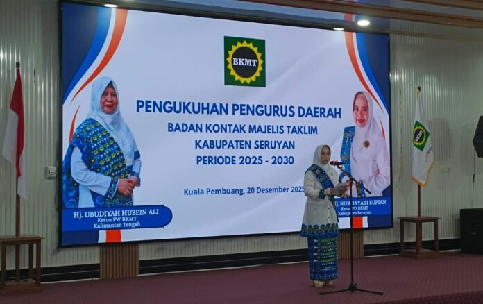 Hal tersebut disampaikan Norhayati Supian dalam rangkaian kegiatan pengukuhan Pengurus Daerah BKMT Kabupaten Seruyan yang berlangsung di Aula BKAD Seruyan, Sabtu (20/12/2025).