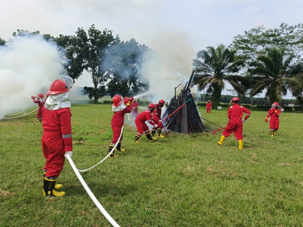 Kegiatan diawali dengan apel bersama dan pengecekan peralatan pemadam, seperti pompa air portabel, selang pemadam, serta perlengkapan pelindung diri. Peserta kemudian menjalani simulasi lapangan, mulai dari pengoperasian pompa, pembentangan selang, hingga penyemprotan air ke titik api yang disimulasikan, dengan dukungan truk tangki air di lokasi.