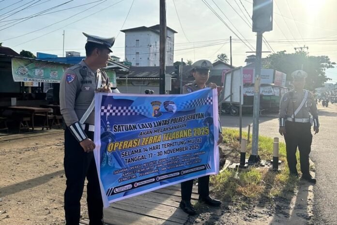 Pada Sabtu, 15 November 2025, Personel Satlantas Polres Seruyan menggelar sosialisasi jelang pelaksanaaan  Operasi Zebra Telabang 2025 di area traffic light Jalan Dr Adam Malik, Kuala Pembuang.