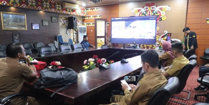 Murung Raya, Zona Kalimantan – Pemerintah Kabupaten (Pemkab) Murung Raya mengikuti Rapat Koordinasi Nasional (Rakornas) Langkah Konkret Pengendalian Inflasi Daerah Tahun 2025 serta Evaluasi Dukungan Pemerintah Daerah dalam Program Pembangunan 3 Juta Rumah secara virtual melalui zoom meeting, Senin (11/11/2025).