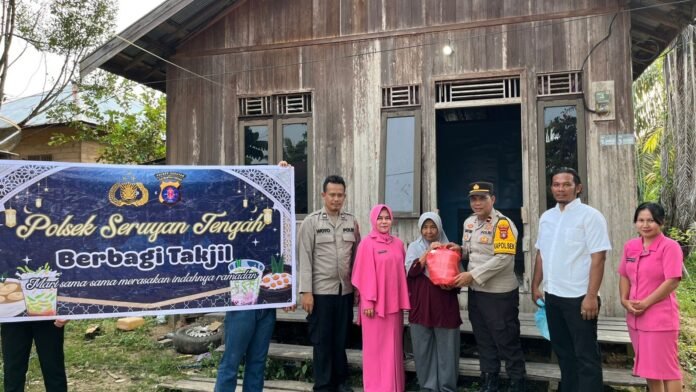 Zona Kalimantan, Rantau Pulut  – Personel Polsek Seruyan Tengah bersama Bhayangkari melaksanakan kegiatan sosial dengan membagikan takjil kepada masyarakat kurang mampu di Kelurahan Rantau Pulut, Kecamatan Seruyan Tengah, Kabupaten Seruyan, Rabu (11/3/2026) sore.