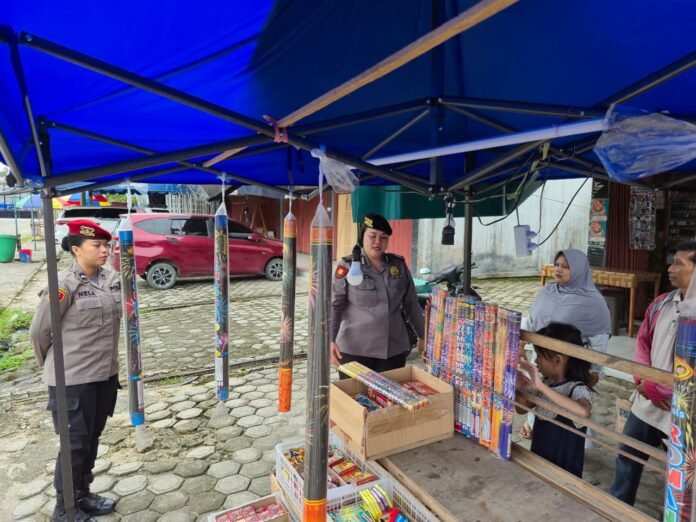 Tak hanya fokus pada kesehatan, tim Polwan juga menyambangi para pedagang kembang api di sekitar kota. Petugas memberikan edukasi mengenai aturan penjualan serta larangan penggunaan petasan berbahaya demi terciptanya situasi yang kondusif pada malam pergantian tahun 2026 mendatang.