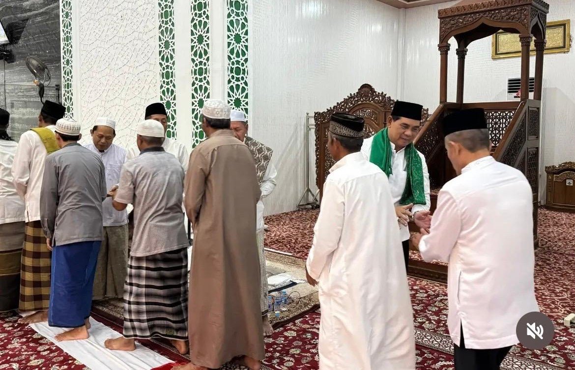 Salat Tarawih di Masjid Raya Shiratal Mustaqim, Bupati Shalahuddin Pererat Silaturahmi