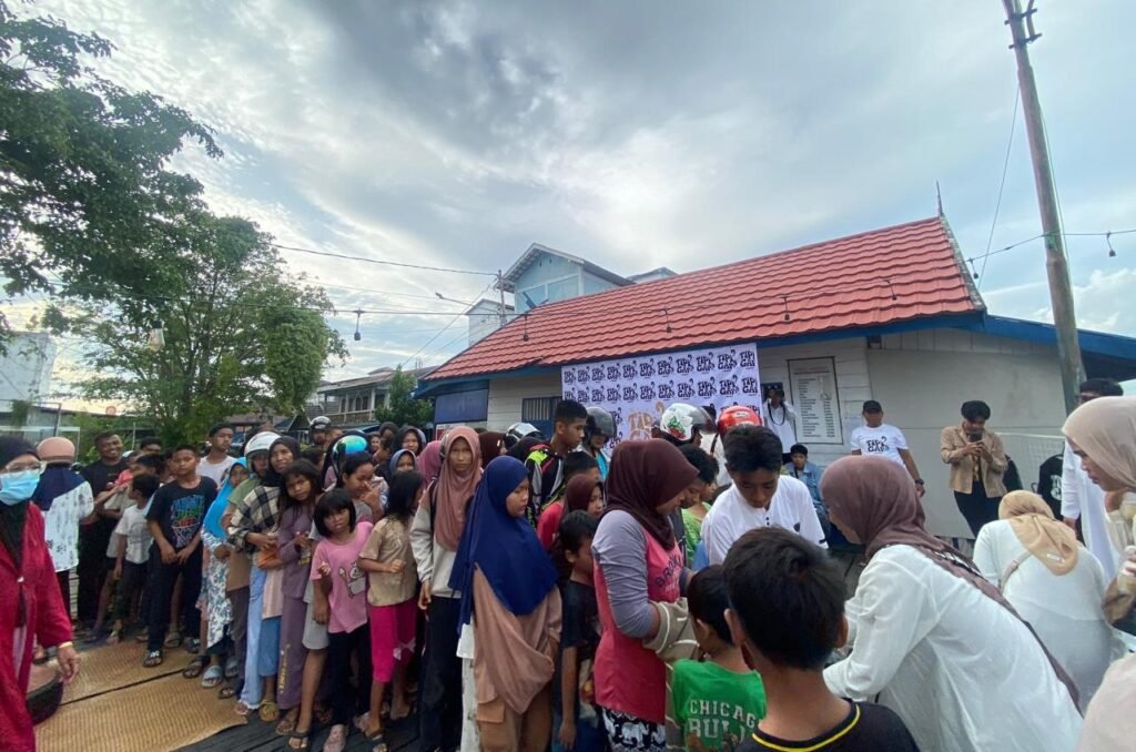 Ratusan warga saat ngantri pembagian takjil pada kegiatan TIPIGAPA Project Jamming Session Ramadan