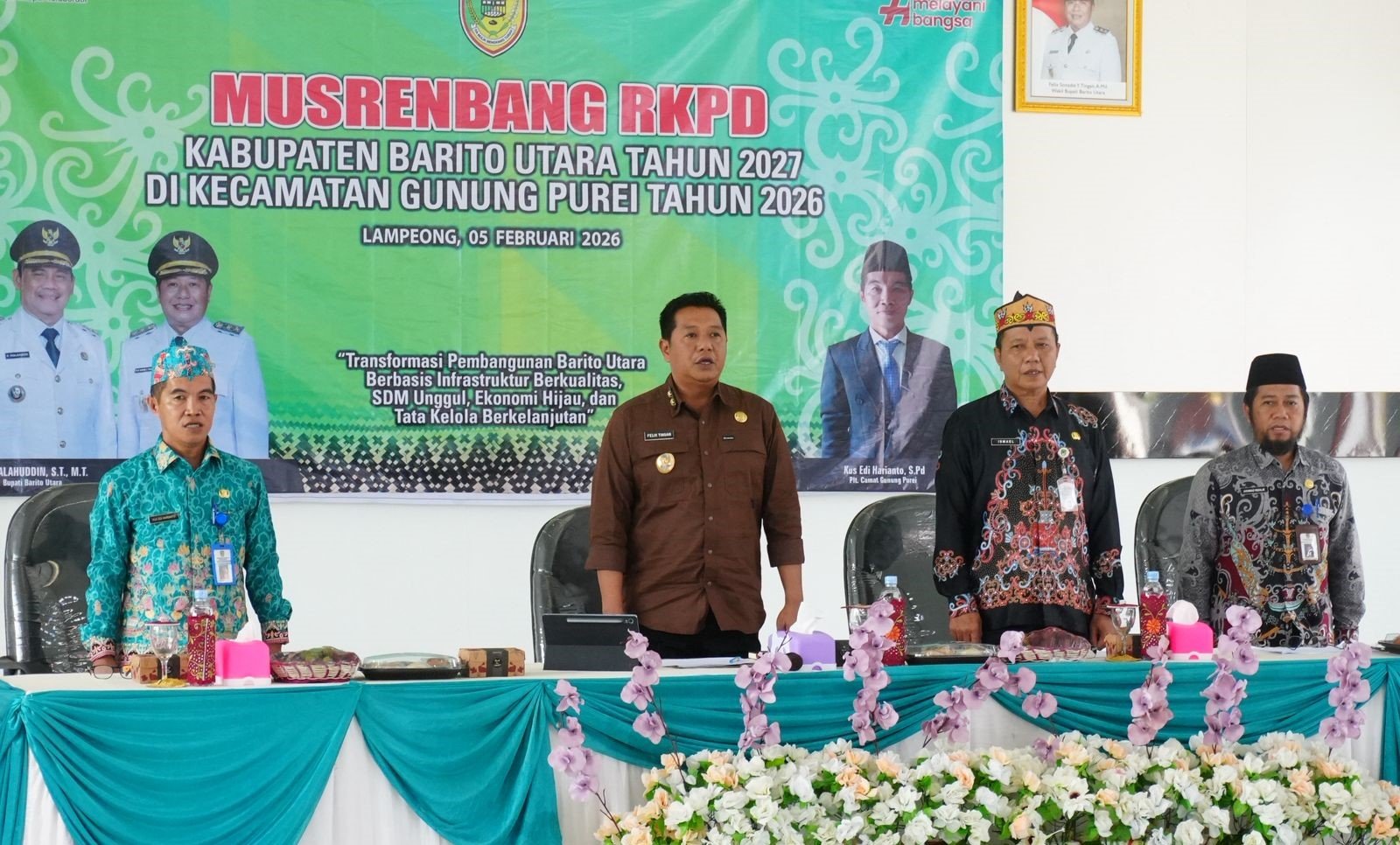 Komitmen tersebut disampaikan Wabup Felix saat menghadiri Musyawarah Perencanaan Pembangunan (Musrenbang) Kecamatan Gunung Purei yang digelar di Lampeong, Kamis (5/2/2026).